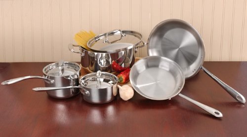 - Tri-Ply Clad pure aluminum core sandwiched between two layers of 18/10 stainless steel