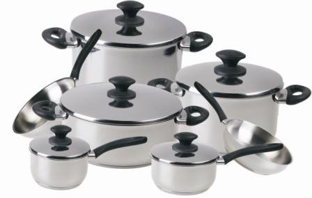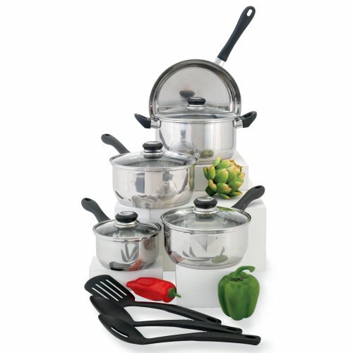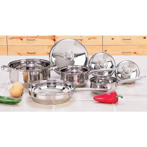 I found color Borderware Millennium 12 piece stainless steel cookware set, forExample, a pretty amazing assortment for the price at Amazon.com. Here's what is included: